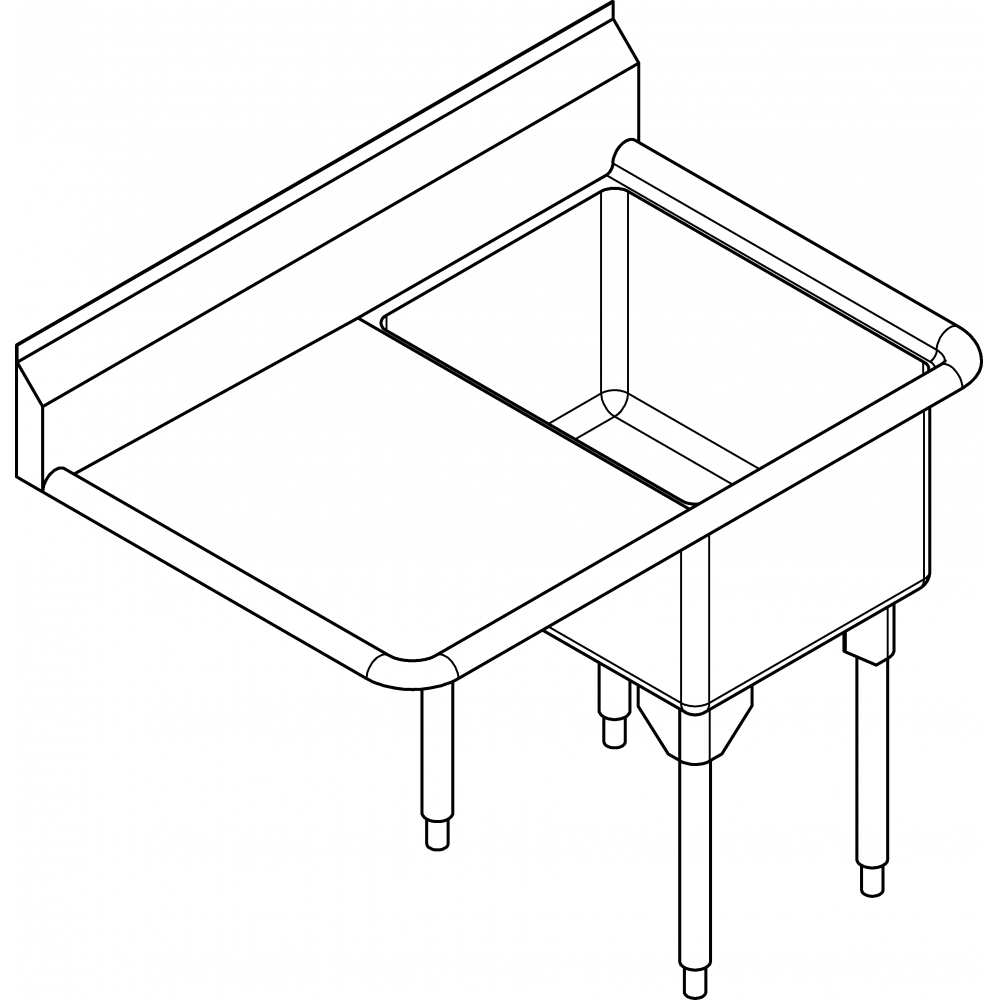Évier utilitaire sur pattes à un seul compartiment « série restaurant ». Ces éviers sont construits pour être autoportants et en n'oubliant pas l'hygiène et la sécurité des aliments. Les coins de cuvettes arrondis à gorge se nettoient facilement et ils sont exempts de fissures ou de joints qui pourraient favoriser la croissance des bactéries. Acier inoxydable type 304 (CNS 18/10), calibre 16 (1,5 mm). Fini satiné poli n° 4. Fini avec rebord roulé. Plateau-égouttoir à droite ou à gauche en pente vers la cuvette. Pattes tubulaires en acier inoxydable à pieds réglables pour la mise de niveau. Bonde d’évier à crépine-panier comprise. Certification selon ASME A112.19.3-2008/CSA B45.4-08, NSF 2. Veuillez compter 4 semaines pour la livraison. Les éviers de cette série utilitaire sur pattes sont fabriqués sur commande et ne peuvent pas être retournés. Orifice d’évacuation au centre. Comprend une crépine à grille-panier de 3 1/2 po (89 mm) avec rallonge tubulaire en laiton de 1 1/2 po (DN38). Options de modèles : RSL2418L- 1-2, 2 trous pour robinets, diamètre 1 1/4 po, 8 po d'entraxe. RSL2418L-1, sur mesure (ne peut être retourné). 30 1/2 x 40 1/4 po Périmètre. 24 x 18 x 14 po Bol. (AA x GD x Prof.). 724 x 1121 mm Périmètre. 610 x 457 x 356 mm Bol. (AA x GD x Prof.).