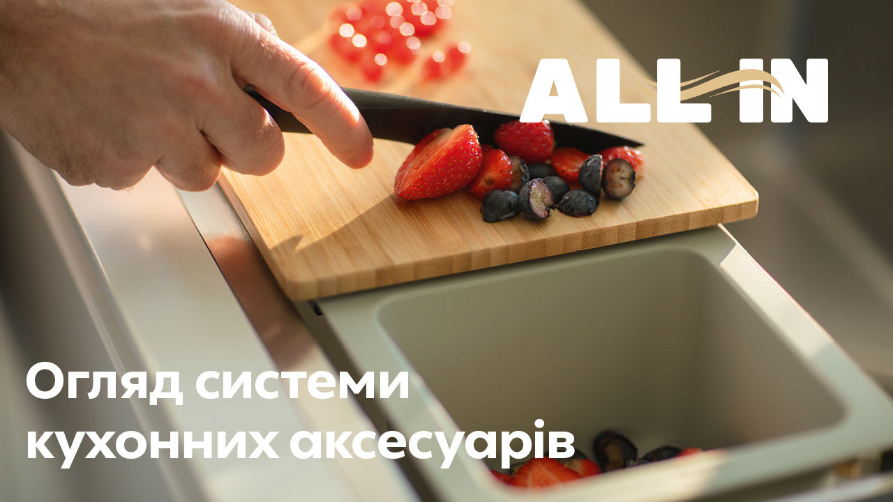 All-In - це інтуїтивно зрозуміла модульна система аксесуарів для мийки. Ергономічность та стильний дизайн ідеально пасує до будь-якого інтер'єру кухні.
