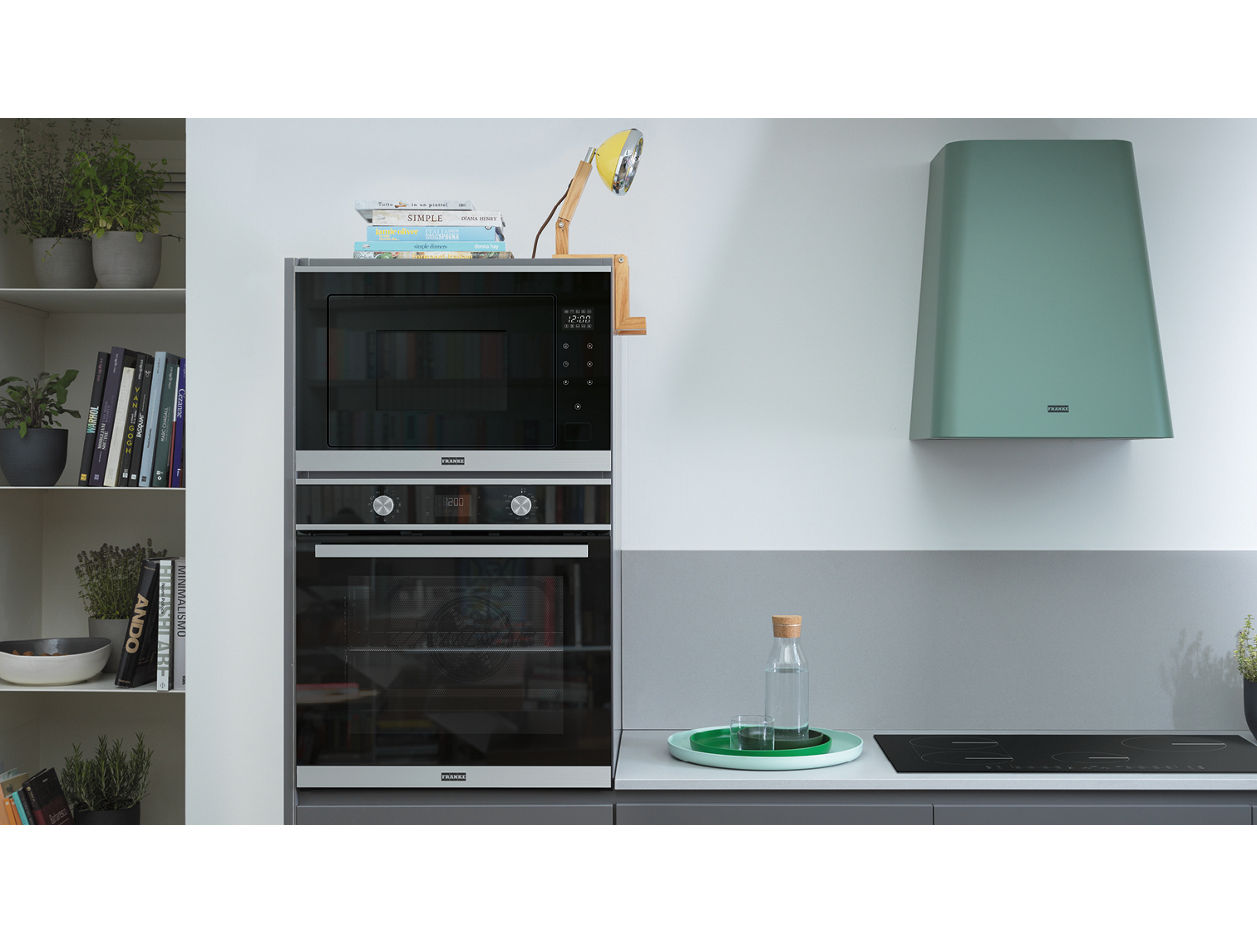 Оберіть компактну духову шафу з функцією мікрохвильової печі або вбудовану мікрохвильову піч з грилем.